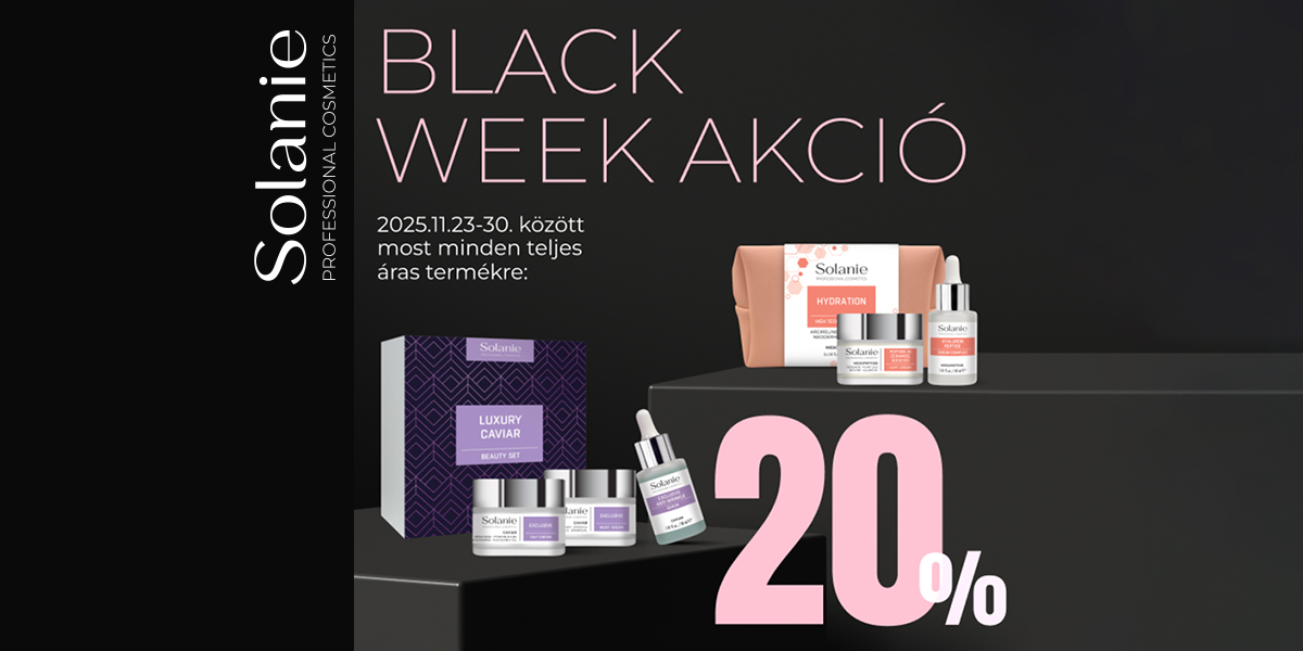 Solanie Black Week 2025 – 20% kedvezmény minden teljes áras termékre, 2025. november 23–30. között.