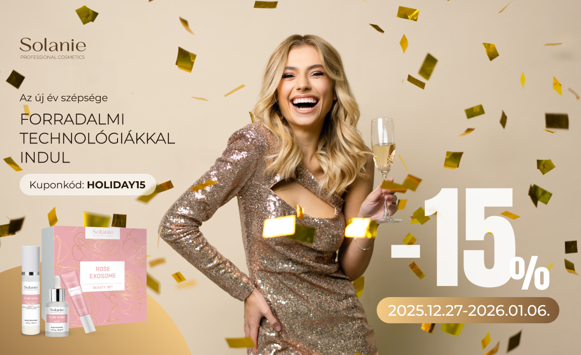• 15% kedvezmény minden teljes árú Solanie termékre, összeghatár nélkül