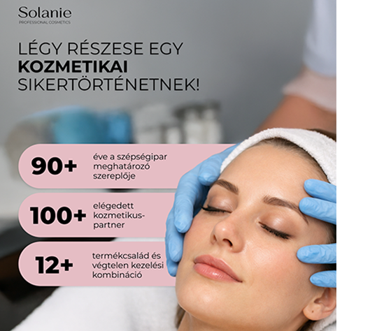 A Solanie egy magyar fejlesztésű, professzionális kozmetikai márka, amely több mint 90 éve dolgozik együtt elkötelezett kozmetikusokkal országszerte. Küldetésünk, hogy stabil szakmai alapot, megbízható termékeket és folyamatos támogatást nyújtsunk azoknak a szakembereknek, akik nem kompromisszumokban, hanem minőségben gondolkodnak.